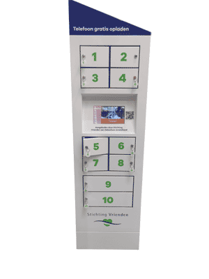 Het laadstation heeft een afsluitbare locker zodat je op een veilige manier de telefoon kan achterlaten en opladen